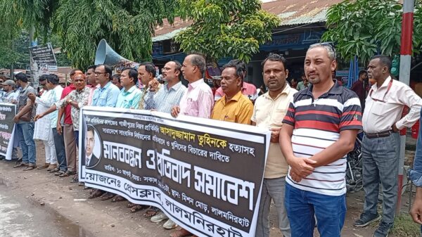 লালমনিরহাটে দৈনিক প্রতিদিনের কাগজের গাজীপুরের স্টাফ রিপোর্টার আসাদুজ্জামান তুহিনকে হত্যার প্রতিবাদ ও খুনিদের ফাঁসির রায় কার্যকরের দাবিতে মানববন্ধন ও বিক্ষোভ সমাবেশ অনুষ্ঠিত হয়েছে। রোববার (১০ আগস্ট) সকাল ১১টায় লালমনিরহাট আরও পড়ুন...