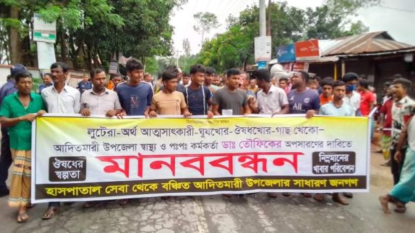 লালমনিরহাটে লুটেরা-অর্থ আত্মসাৎকারী-ঘুষখোর-ঔষধখোর-গাছ খেকো-আদিতমারী উপজেলা স্বাস্থ্য ও পরিবার পরিকল্পনা কর্মকর্তা ডাঃ তৌফিকের অপসারণের দাবিতে মানববন্ধন অনুষ্ঠিত হয়েছে। রোববার (২৪ জুলাই) সকাল ১০টা ৩০মিনিটে লালমনিরহাটের ৫০শয্যা বিশিষ্ট আদিতমারী উপজেলা স্বাস্থ্য কমপ্লেক্স আরও পড়ুন...