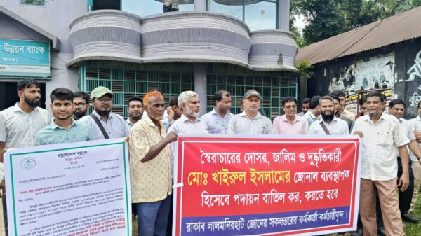 লালমনিরহাটে স্বৈরাচারের দোসর, জালিম ও দুষ্কৃতিকারী মোঃ খাইরুল ইসলামের জোনাল ব্যবস্থাপক হিসেবে পদায়ন বাতিল কর, করতে হবে মানববন্ধন ও বিক্ষোভ কর্মসূচি অনুষ্ঠিত হয়েছে। সোমবার (২২ সেপ্টেম্বর) সকাল ১১টা ৩০মিনিটে আরও পড়ুন...