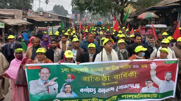 লালমনিরহাটে জাতীয় পার্টির ৩৯তম প্রতিষ্ঠা বার্ষিকী উপলক্ষে বর্ণাঢ্য আনন্দ শোভাযাত্রা ও আলোচনা সভা অনুষ্ঠিত হয়েছে। বুধবার (১ জানুয়ারি) বিকালে লালমনিরহাটের আলোরুপা মোড়স্থ লালমনিরহাট জেলা জাতীয় পার্টি অফিসে লালমনিরহাট জেলা আরও পড়ুন...