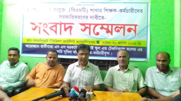 লালমনিরহাটে সরকারি স্কুলে সংযুক্ত (বিএমটি) শাখার শিক্ষক-কর্মচারীদের সরকারিকরণের দাবীতে- সংবাদ সম্মেলন অনুষ্ঠিত হয়েছে। শনিবার (৩১ আগস্ট) দুপুর ১২টায় লালমনিরহাটের বালাটারীস্থ লালমনিরহাট টেলিভিশন জর্নালিস্ট অ্যাসোসিয়েশনের হলরুমে হাতীবান্ধা এস এস সরকারি আরও পড়ুন...