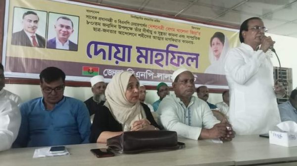লালমনিরহাটে সাবেক প্রধানমন্ত্রী ও বিএনপি চেয়ারপার্সন দেশনেত্রী বেগম খালেদা জিয়া’র ৮০তম জন্মদিন উপলক্ষে তাঁর দীর্ঘায়ু ও সুস্থতা কামনা এবং সাম্প্রতিক ছাত্র-জনতার আন্দোলনে শহীদের আত্মার মাগফিরাত কামনায়- দোয়া মাহফিল অনুষ্ঠিত হয়েছে। আরও পড়ুন...