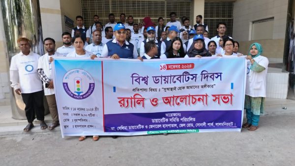 লালমনিরহাটে “সুস্বাস্থ্যই হোক আমাদের অঙ্গীকার” প্রতিপাদ্য বিষয়কে সামনে রেখে বিশ্ব ডায়াবেটিস দিবস উপলক্ষে র্যালি ও আলোচনা সভা অনুষ্ঠিত হয়েছে। বৃহস্পতিবার (১৪ নভেম্বর) সকাল ৯টায় লালমনিরহাটের জেল রোড সোনালী পার্কস্থ আরও পড়ুন...
