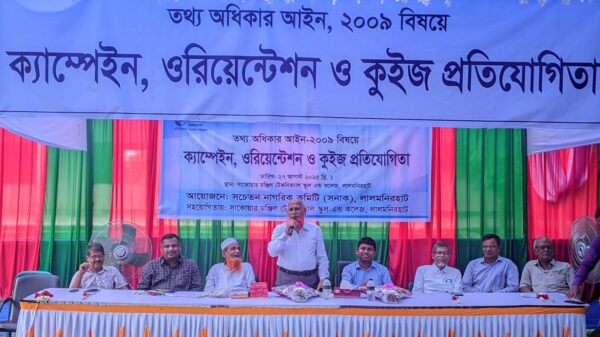 লালমনিরহাটে “জানবো জানাবো, দুর্নীতি রুখবো” শ্লোগান নিয়ে তথ্য অধিকার আইন-২০০৯ বিষয়ে ক্যাম্পেইন, ওরিয়েন্টেশন ও কুইজ প্রতিযোগিতা অনুষ্ঠিত হয়েছে। বুধবার (২৭ আগস্ট) সকাল ১১টায় লালমনিরহাটের আদিতমারী উপজেলার সাপ্টীবাড়ী ইউনিয়নের সাকোয়ার আরও পড়ুন...