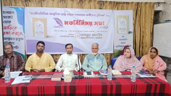 লালমনিরহাটে “তওহীদভিত্তিক আধুনিক রাষ্ট্র গঠনে গণমাধ্যম কর্মীদের ভূমিকা” শীর্ষক মতবিনিময় সভা অনুষ্ঠিত হয়েছে। শনিবার (২৭ সেপ্টেম্বর) সকাল ১১টায় লালমনিরহাটের হাড়ীভাঙ্গাস্থ মাটির মায়া মিলনায়তনে হেযবুত তওহীদ লালমনিরহাট জেলার আয়োজনে এ আরও পড়ুন...